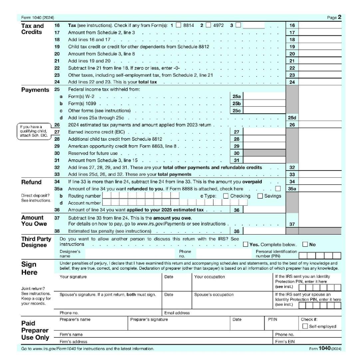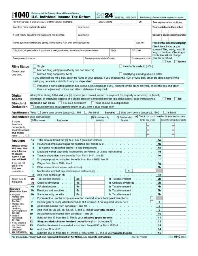 How filling out the Form 1040 can differ based on your tax situation